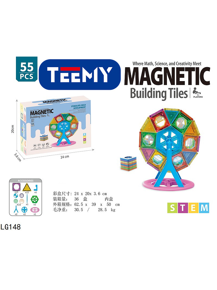 BLOQUES MAGNETICOS 55 PIEZAS , PRECIO PUBLICADO ES AL POR MAYOR Y DEBEN SER 3 UNIDADES DEL MISMO (LG148)