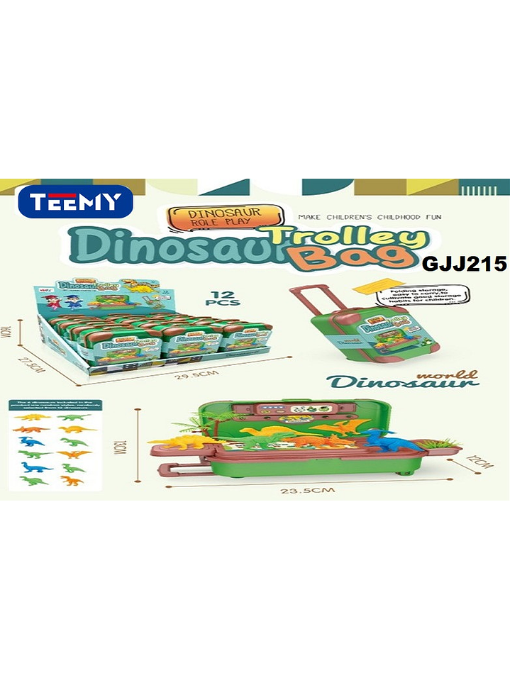 MALETICA CON DINOSAURIOS PAQUETE 12 PIEZAS (GJJ215)